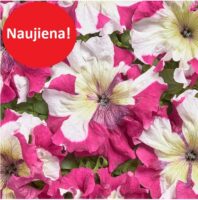 A dark pink multiflora which produces 50 % double flowers reminiscent of carnations and 50% single flowers with an eye-catching yellow throat.