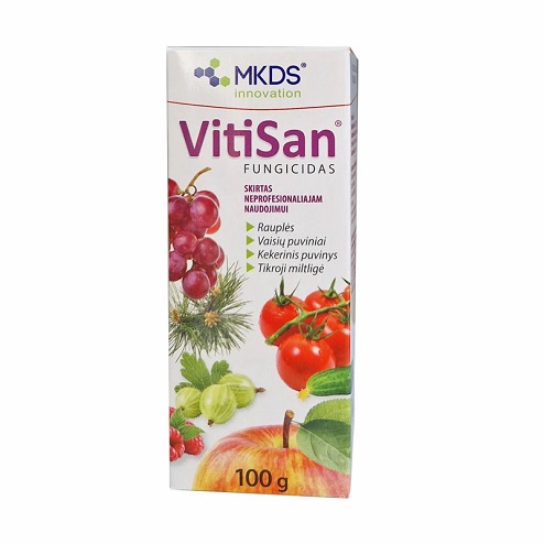 Natūrali ir patikima augalų apsaugos priemonė – „VitiSan®“ fungicidas, skirtas kovai su grybelinėmis ligomis darže, sode ir šiltnamyje.